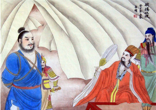 两晋末年,幽州都督王浚企图谋反篡位。晋朝名将石勒闻讯后,打算消灭王浚的部队。王浚势力强大,石勒恐一时难以取胜。他决定采用“欲擒故纵”之计,麻痹王浚,他派门客王子春带了大量珍珠宝物,敬献王浚。并写信向王浚表示拥戴他为天子。信中说,现在社稷衰败,中原无主,只有你威震天下,有资格称帝。王子春又在一旁添油加醋,说得王浚心里喜滋滋的,信以为真。正在这时,王浚有个部下名叫游统的,伺机谋叛王浚。游统想找石勒做靠山,石勒却杀了游统,将游统首级送给王浚。这一着,使王浚对石勒绝对放心了。
