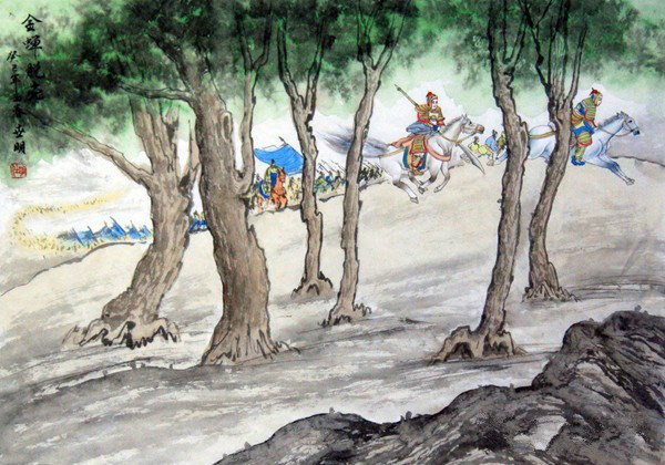 宋朝开禧年间,金兵屡犯中原。宋将毕再遇与金军对垒,打了几次胜仗。金兵又调集数万精锐骑兵,要与宋军决战。此时,宋军只有几千人马,如果与金军决战,必败无疑。毕再遇为了保存实力,准备暂时撤退。金军已经兵临城下,如果知道宋军撤退,肯定会追杀。那样,宋军损失一定惨重。毕再遇苦苦思索如何蒙蔽金兵,转移部队。这对,只听帐外,马蹄声响,毕再遇受到启发,计上心来。